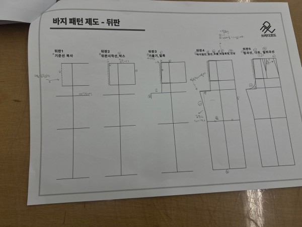 바지는 기본원형이 없기때문에 매번 패턴을 새로 그려야한다.