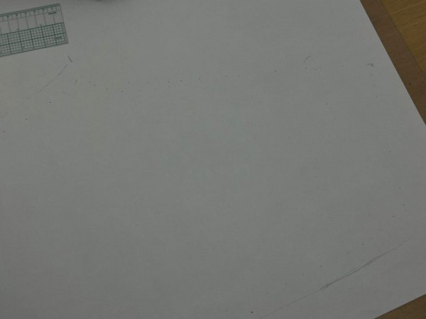 그리고 문진으로 눌러주고 앞섭과 엉덩이부분을 먼저 송곳으로 고정시켜준 후 전체적인 라인을 어느정도 그려준다.
