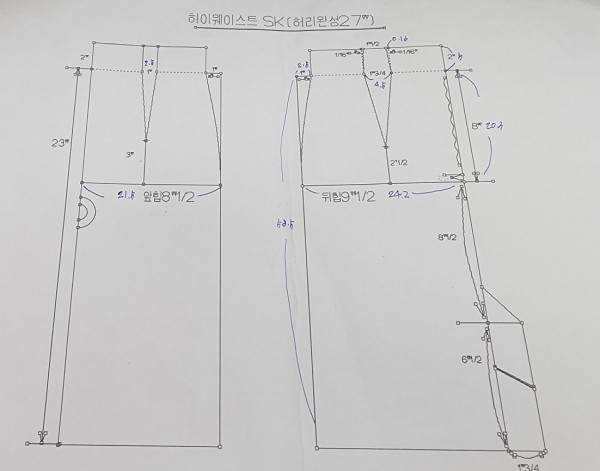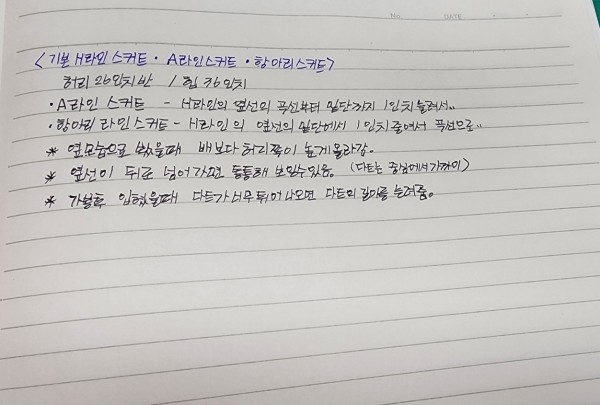 첫수업에서는 H라인, A라인, 항아리 스커트의 패턴을 그려봤어요.