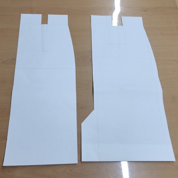 패턴을 여러번 연습하고나서 광목으로 재단하여 가봉을 했는데