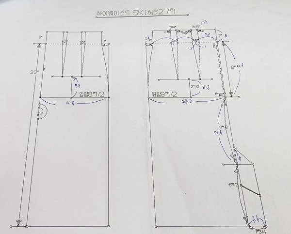 하이웨스트 스커트의 패턴을 그리고 직접 가봉까지 했어요!