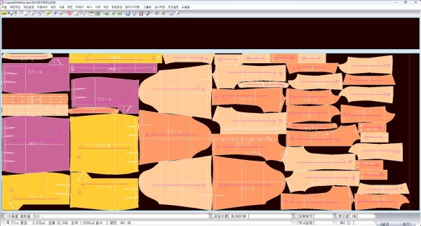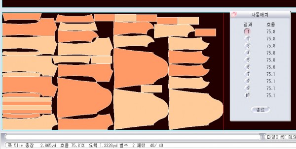 - 조건설정 배치정보 - 빨간선 고정가능 - 벌수 바꾸기 가능 2벌로 적게 바꾸면 요척이 확뜀