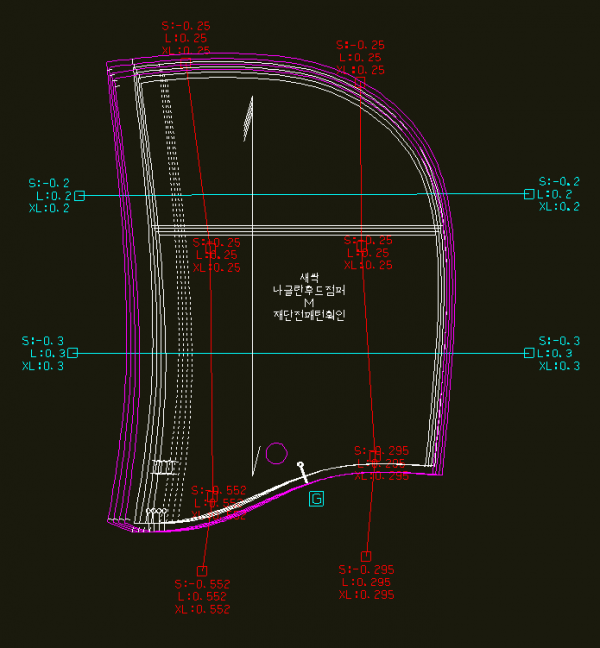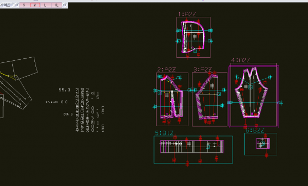 *간단하게 그레이딩이 잘 되었는지 확인하려면 기본 사이즈를 제외한 아무 사이즈를 누르고 거기서 m-로 합복 길이 확인을 한다. 만약 이상하다면 그레이딩을 다시 해야한다..