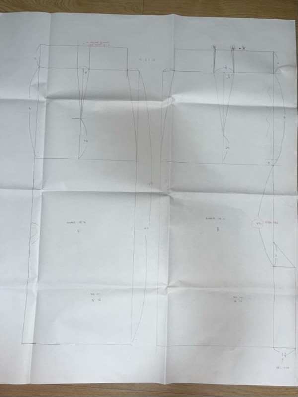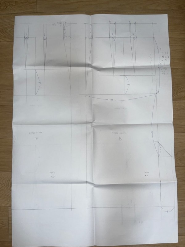 저번주에 학습했던 기본 h라인 스커트를 응용하여 하이웨스트 스커트를 제도하여 직접 가봉까지 보았습니다. 하이웨스트 스커트는 다트가 하나인 것과 두 가지를 모두 그려 보았습니다. 하이웨스트 부분의 다트 위쪽을 조금 채워주는 원리에 대하여 이해하였고, 겹트임의 길이가 밑단 기준이 아닌 힙 기준이라는 것을 새로 알게 되었습니다.