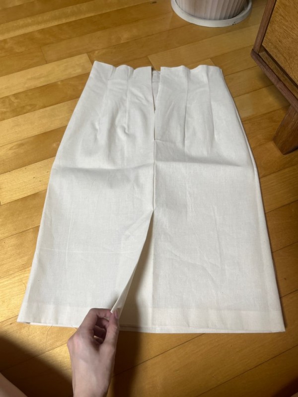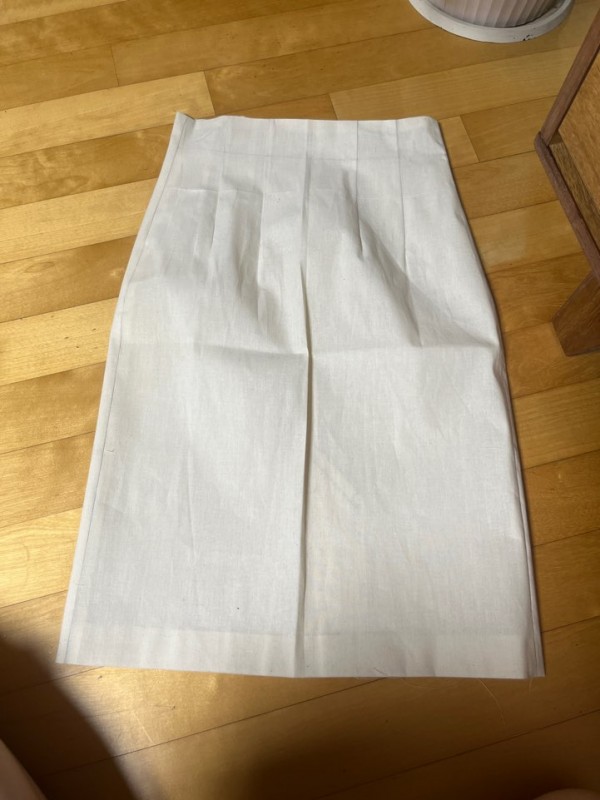 패턴을 여러 번 연습해본 후, 광목으로 재단하여 직접 미싱을 통해 다트를 박고, 옆선을 연결하고, 겹트임을 만드는 등 전 과정을 거쳐 h라인 하이웨스트 스커트를 완성하였습니다. 완성하고 나서 직접 해당 사이즈의 바디에 입혀봄으로써 봉제가 제대로 되었는지 확인하는 과정도 거쳤습니다.