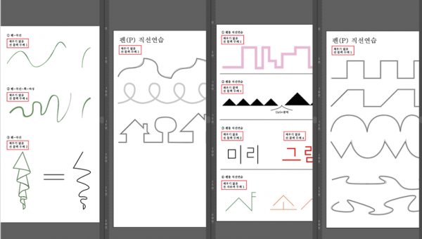 펜툴의 기본을 익히기 위해 직선, 곡선을 연습하고...