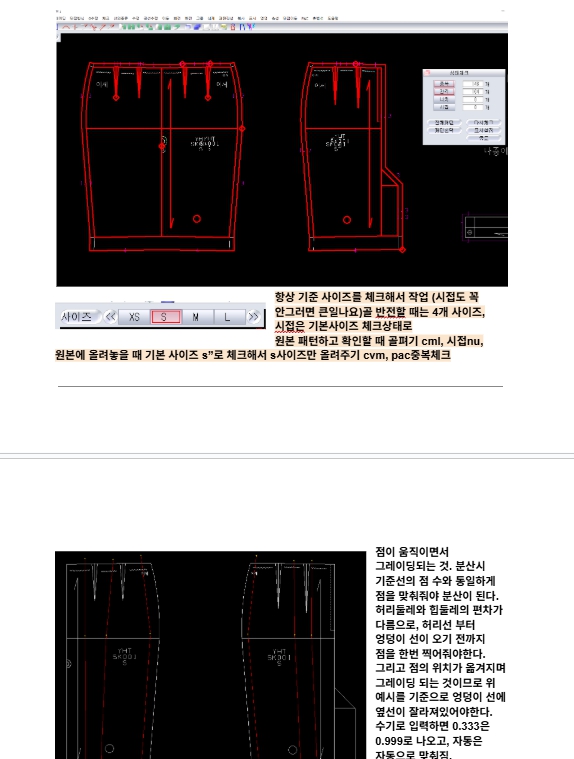 ★기준 사이즈를 체크해서 작업하도록 필수★시접도★