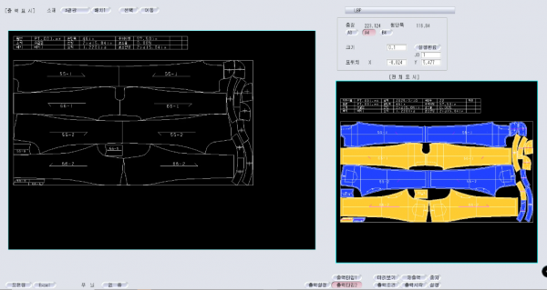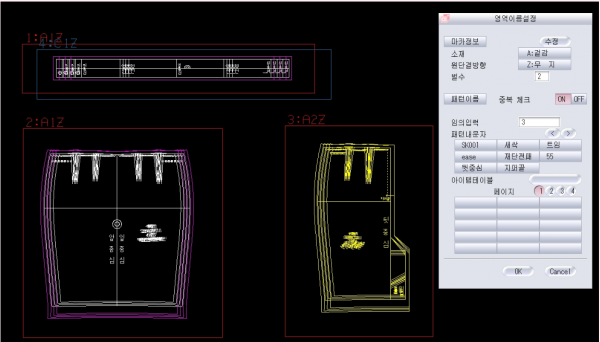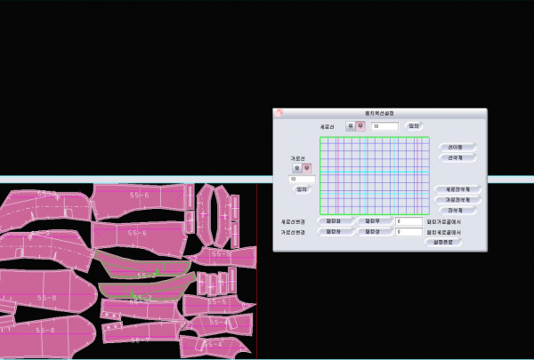 패턴 벌수를 입력하고 소재별 배치를 정하는 과정이었어요.