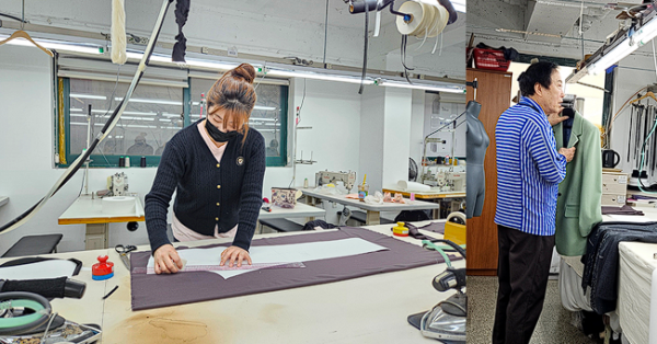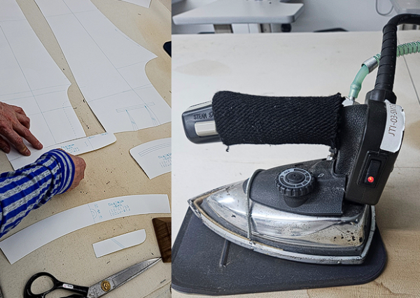 1주일 전부터 매니저님께서 패턴인쇄로 준비해 주셨습니다. 다림질 부터 배워보았는데요. 다리미도 원단에 따라 온도를 다르게