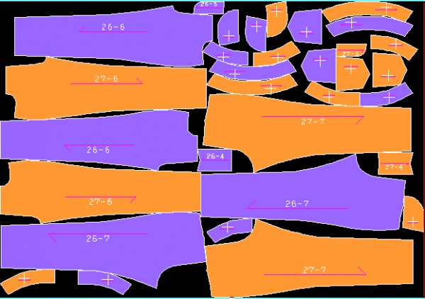 대화배치에서는 패턴을 자유롭게 배치할 수 있으나, 원단 소요량을 최대한 줄이기 위하여 뺴곡히 배치하는것이 중요합니다.