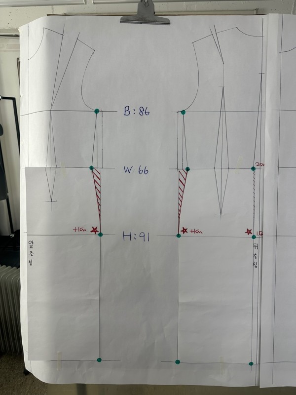 2/19 모델리스트 수업에서는 상의원형과 스커트 원형을 이용하여 토루소 원형을 제작하는 방법에 대해서 공부했습니다.
