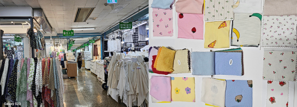 이 날은 자유롭게 동대문 종합시장에서 천의 늘림정도와 소재컬러도 맞춰보며