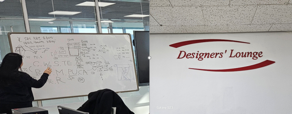2시간 가량 여기 저기저기 헤메며 힘들긴 했으나 디자이너들은 라운지에서 소재 정리하느라 바쁘게 움직이는 모습을 보고