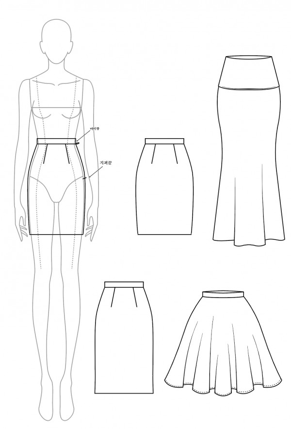 [교수님께서 첨부해주신 자료 이미지에 덧대어 스커트와 바지 등을 그려보기]