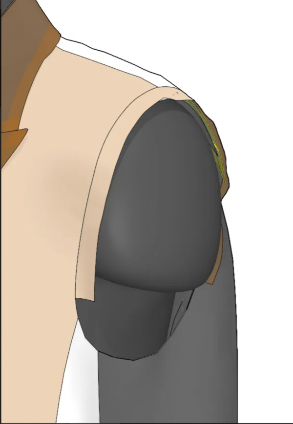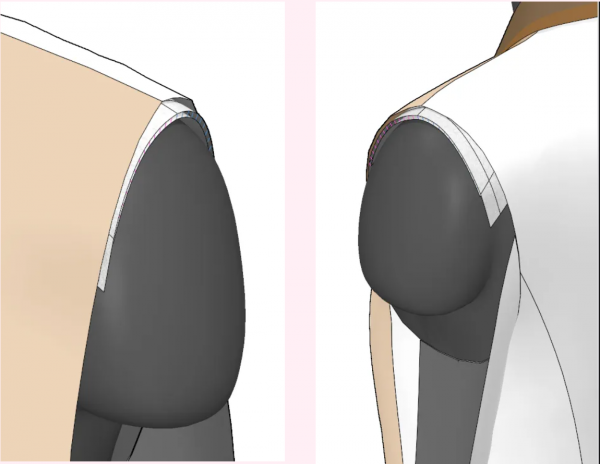 숄더 패드는 커질수록 줄어드는 정도가 크므로 배치에 유의했어요.