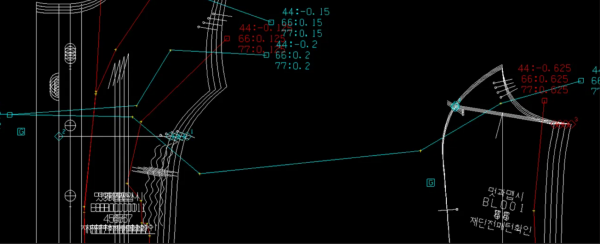 패턴전개-너치위치 확인- GEP- 수치 변경등 여러 작업을 끝낸후 패턴전개하고 확인하고.....