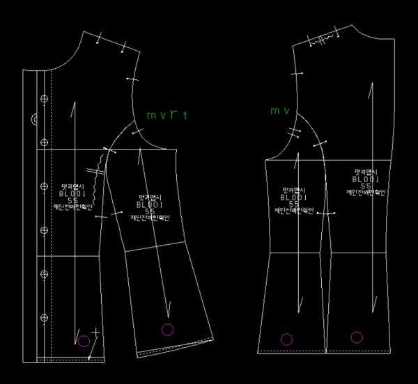 패턴이동 과정에서 끝점끼리 정확히 이어주어야 그레이딩 절개선을 넣을수 있어요.