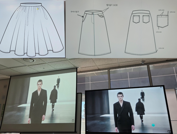 오후가 되니 눈이 갑자기 쉴새없이 내리고 쌓이는 바람에 영화의 한 장면을 보는 줄 알았습니다. 집에 못가는 줄 알고 식겁했는데 다행히 집에 갈때되니 눈이 그치더라구요. 막간을 이용해서 졸지 않도록 패션쇼도 보여주셨는데요. 너무 집중해서 빨려들어가는 줄 알았어요. 교육장 내부에 모니터와 빔이 여러 대 설치되어 있다 보니 조명을 다 끄고 쇼를 감상했더니 마치 쇼장에 와 있는 것처럼 느껴졌어요. 지난 주가 서울패션위크가 열려서 그런지 더 진지하게 바라보게 되었습니다.