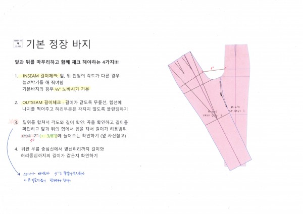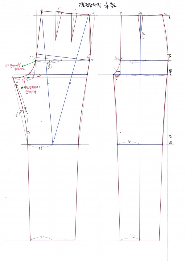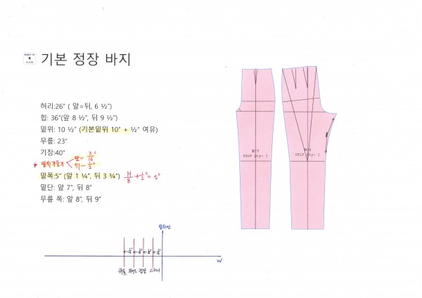 패턴수업-정장바지1/4축도(강서패션디자인5기 김현진)