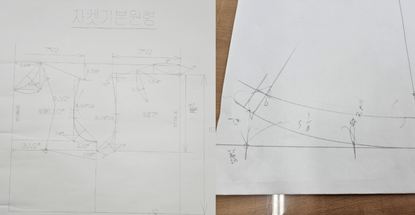 패턴에서 조금이라도 문제가 생기면 옷이 잘 만들어지지 않기 때문에 중심선 그리는 것에 좀 신경을 많이 써야겠습니다.