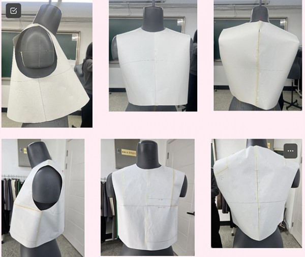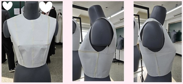 상의 원형을 바디에 착장한 후 다트의 위치를 찾는 과정부터 시작하였습니다.
