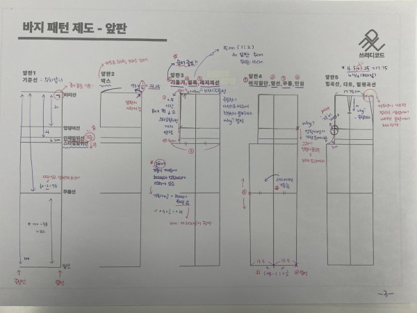 오후에는 정장 바지 패턴을 이해하고 그려보는 시간을 가졌으며, 와이드 팬츠와 정장바지 사이의 차이점을 배우며 바지의 선분들이 실루엣에 어떠한 영향을 미치는지 생각해 볼 수 있었던 시간이였습니다.
