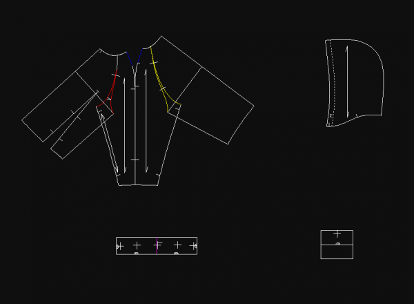 - 후드 기준점은 식서 기준으로 영쪽으로 있으묜 옆선쪽에, 식서가 바깥에 있으면 앞중심쪽