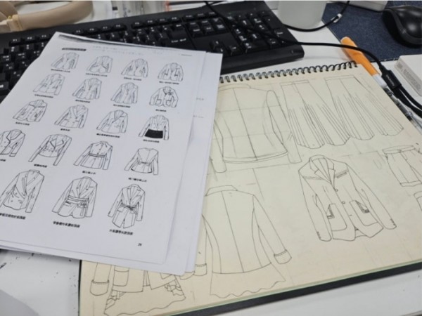 선생님께서 자켓, 바지, 원피스 등의 자료를 주시고 작업지시서 그리기 연습 하고 검토 후 피드백하고 펜선을 따고 완성해보기로 오전 수업을 진행하셨어요.