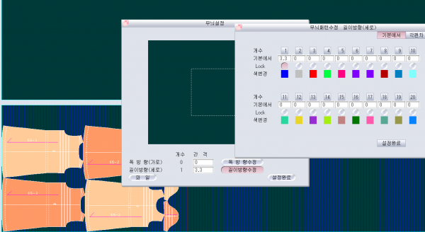 - 조건설정 - 원단설정 - 커맨드 - 개수 1개에 불키고, 수치는 3.3, 나머진 0으로 해서 스트라이프 무늬 적용하기!