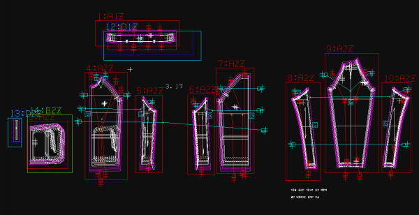 *만약에 주머니 사이즈까지 몸판에 맞춰서 그레이딩 하려면, 따로 절개선 넣어줘도 되고, (그룹화한후에)몸판에 MVRT로 곁친다음에 같이 절개선 넣고, 주머니 그룹만 빼와도 됨