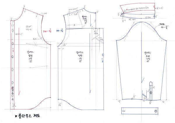 패턴수업-블라우스1/4축도(강서패션디자인5기 김현진)