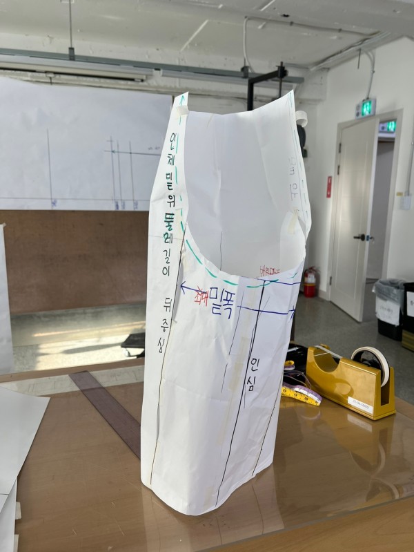 스커트에는 없던 밑위라는 개념을 이해하며 바지 패턴에 필요한 선분들이 어떠한 형태로 나타내져야 하는지 생각해 보는 시간이 되었고,