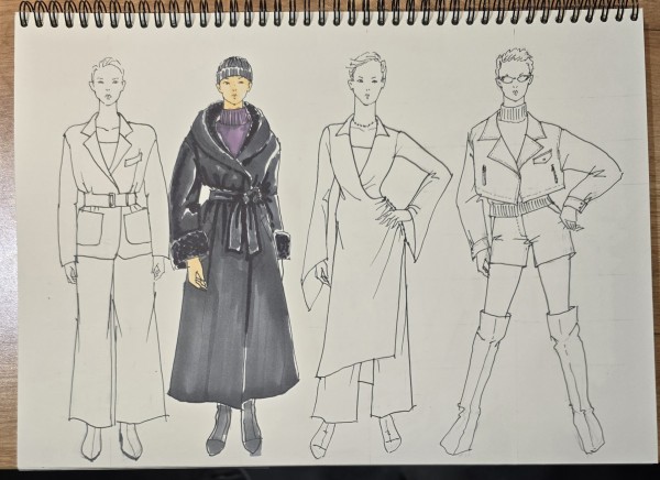 그다음 9등신으로 다양한 포즈를 그리고 그위에 옷도 그려보고 마카로 채색도 해보았습니다.
