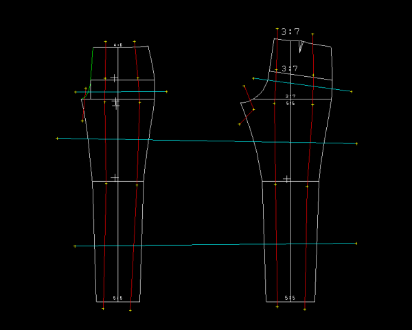 기장변경 : 밑위높이 0.5 고정 나머지 분배 또는 한 선으로 합친다.(무릎아래)