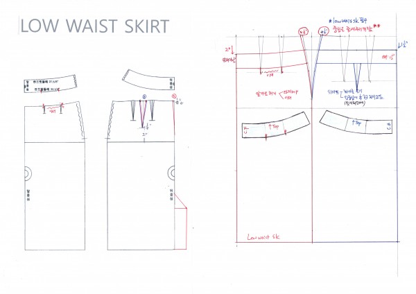lowwaist sk는 중힙을 줄여주기위해 원허리선에서 1/4인치 줄여주는것이 필수입니다.