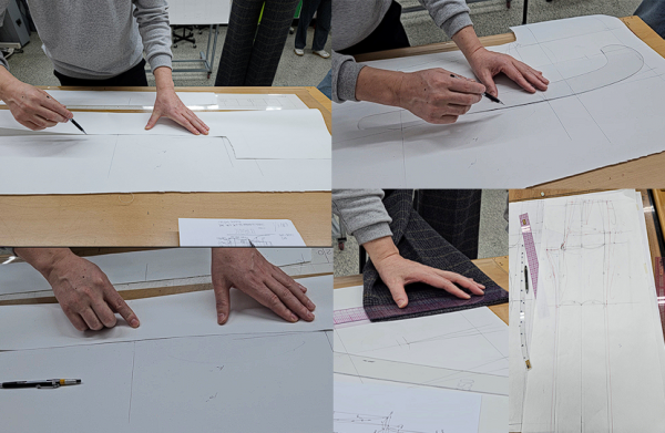 4주차 모델리스트 수업은 정장바지패턴 그리기 였습니다. 정장바지는 스커트와 다르게 뒷판을 그린 후, 뒷판을 기준으로 복사해서 앞판을 그려야 된다는 것을 알 수 있었습니다. 패턴지에 처음 그릴때 밑위길이를 고려하여 4인치 정도 여유있게 그려야 했습니다.유인물에는 앞 뒤판이 구별없이 한번에 그려져 있어 앞뒤판이 헷갈렸습니다. 어떤 규칙이 있는지 아직 이해하긴 어렵지만 계속 그려가면서 원리를 깨달을 수 있도록 해야겠습니다.