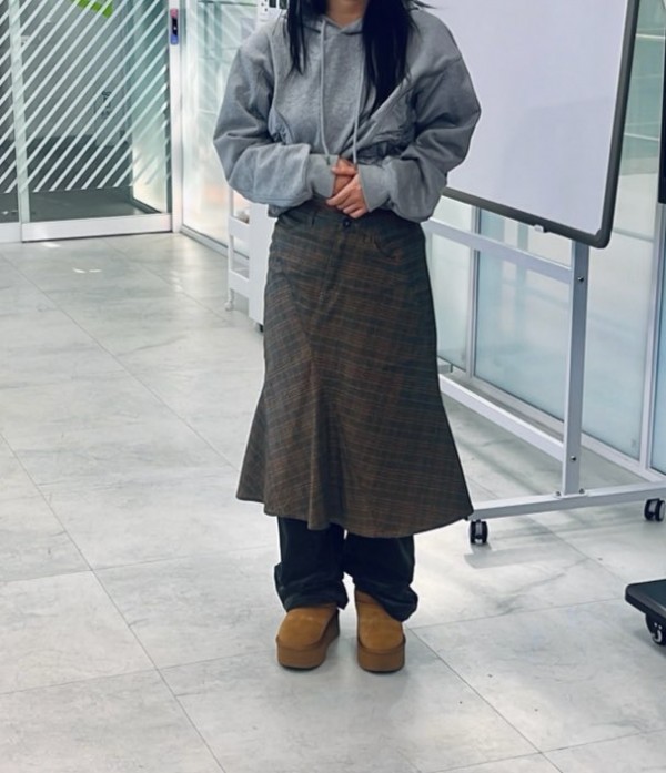 수백벌 가운데 진땀을 빼어 가져온 스커트를 이리저리 재고 관찰하며