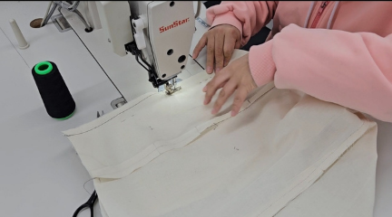 어느정도 종이가봉이 끝나면, 제봉까지 가능한 친구들은 제봉실에서 광목으로 옷을 만들 수 있는 시간이 주어졌고 만들지 못하는 친구들은 구경을 하면서 조금씩 제봉기를 다루어 보곤 했었는데요. 마스터한 친구들이 좀 있다 보니 보는 재미도 있었고, 저는 이날 잘려진 패턴을 주면 지시대로 제봉을 해보는 시간을 가졌습니다. 2명 또는 3명씩 모여서 제봉을 하다보니 금방 스커트 샘플이 완성이 되었습니다. 이 시간도 흥미로운 시간이였습니다.