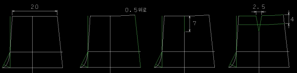 시접 생성(nu)과 수정(cpm, cas)을 통해 허리, 옆선, 밑단, 벨트 등 부위별로 시접량을 설정했습니다.
