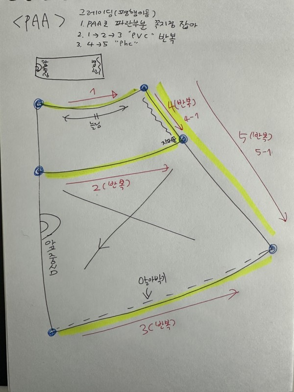 * 파란색 점이 꼬일때 P로 완전히 지운후 다시 영역 잡아주기
