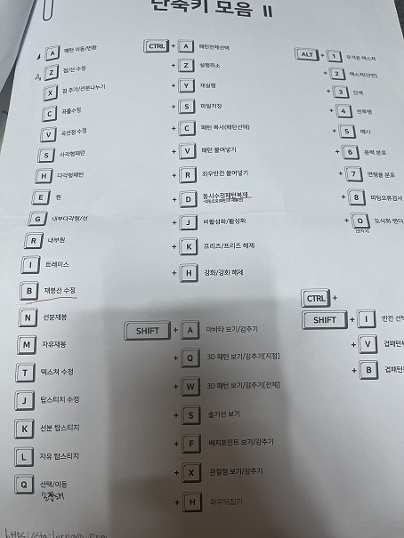 첫시간이라 선생님께서 단축기를 외우면 수월하다는 말씀과 프린트물도 나누어 주셨고,