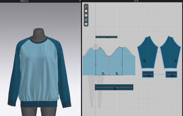 래글런은 형태만 약간 다르고 지난 시간에 배운 티셔츠와 유사해서 금방 할 수 있었습니다.