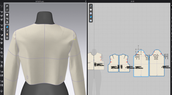 오늘도 캐드로 제도한 상의를 클로로 보내서 3D로 입혀보았습니다.