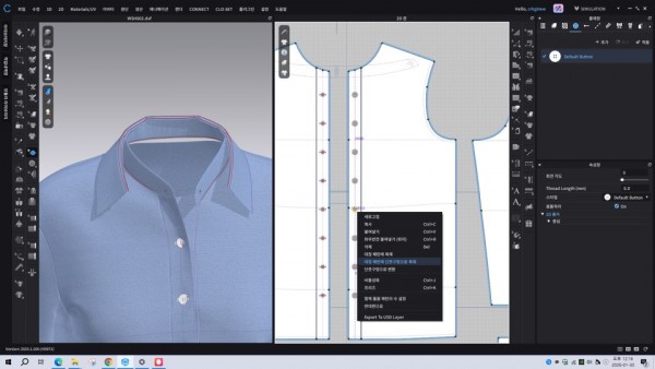 6.아바타에 배치, 단작 배치시 왼쪽을 (마주본 방향_아바타방향에선 오른쪽)반대편보다 위로 오도록 배치하여 단추가 오른쪽(아바타방향 왼쪽)에 달리게 만든다.