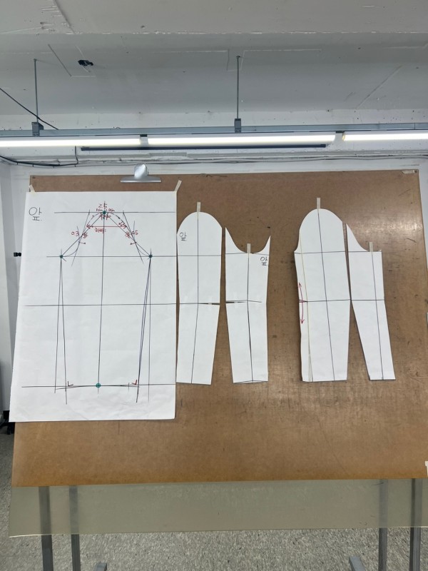 한장소매를 먼저 제도하고 두장소매로 변형하는 법을 배웠다.