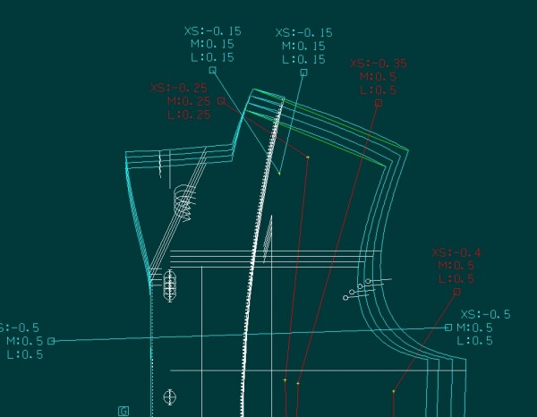 - 라펠의 오른쪽 너치는 앞중심선임! 밑단의 너치도 앞중심선 연장하면 앞중심선이 됨!