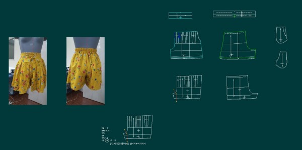- 원래 안감은 겉감보다 크게 제도되나 이 반바지는 디자인 상으로 너무 크기 때문에 안감은 정사이즈로 제도됨