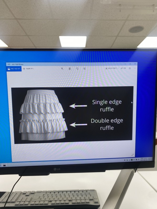 오늘은 싱글 더블 러플 치마를 배웠다. 원하는 색을 넣어서 마무리 해주니 그럴싸하게 보여서 만족스러웠다. 오늘 배웠던 것 중에 어려웠던건 재킷에 허리띠 매는거였다. 생각보다 컨트롤이 안돼서 강사님의 도움을 많이 받았지만 그만큼 더 확실하게 정립할 수 있었다. 허리를 고무줄로 잡아주는 등 허리띠를 매기 위한 과정이 아직 낯설어서 복습하는 시간을 많이 가져야할거 같다.