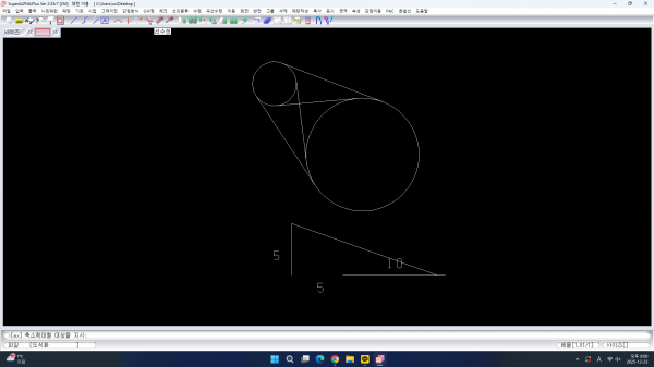 sn : 기준선과 같은 길이로 수정하기 - sn 또한 cl 과 같이 기준점으로 지시한 곳의 반대편이 수정됩니다. 자주 쓰이는 중요한 기능이며, 곡선에서 선의 길이를 줄일 때 사용하면 선의 길이는 달라지지만 점은 그대로 살아있다는 특징이 있습니다.