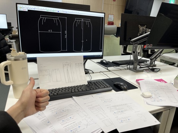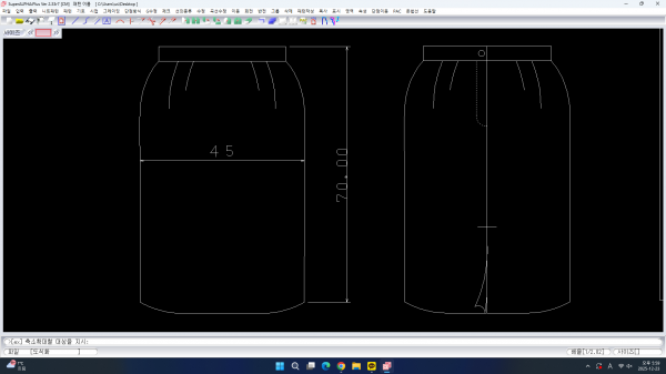 덕분에 2일차만에 유카캐드의 기능들을 응용하여 도식화를 그릴 수 있었습니다! 스커트와 바지 도식화를 유카캐드로 그릴 수 있을 줄은 몰랐는데 2일차만에 이렇게 할 수 있다는 것이 정말 뿌듯했습니다.